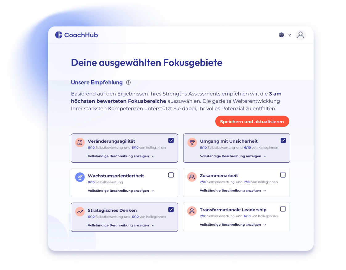 Programm-Manager definieren klare Fokusbereiche und verfolgen den Fortschritt über Selbst- oder 360°-Feedback. So wird Verhaltensänderung sichtbar und Leistungsverbesserung messbar.