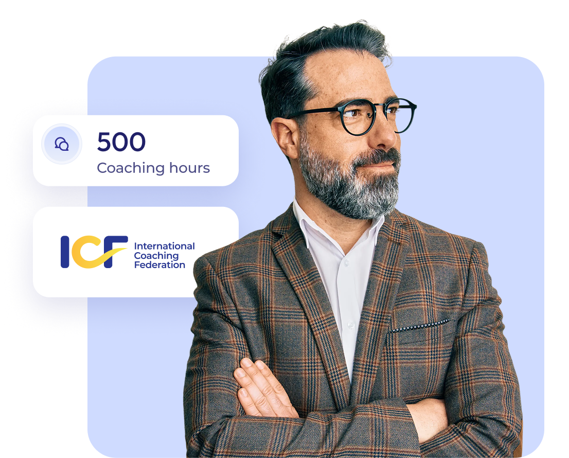 CoachHub’s business coaches are a highly vetted group of seasoned professionals who meet strict standards that go well beyond typical market requirements. Every coach holds at least a PCC level certification from the International Coaching Federation (ICF) or an equivalent credential.
