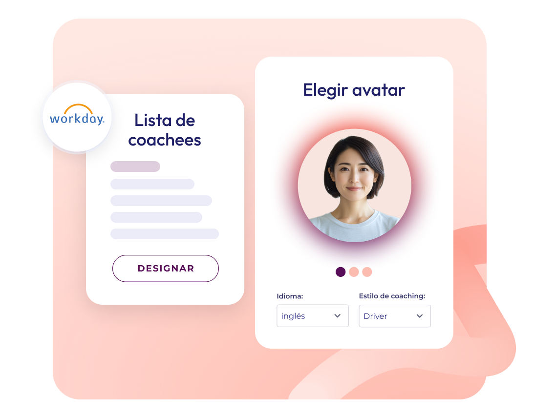 Personaliza AIMY™ según los valores y objetivos de tu empresa, conéctalo con Workday para designar empleados fácilmente y permite que cada persona adapte su coach de IA para vivir una experiencia única.