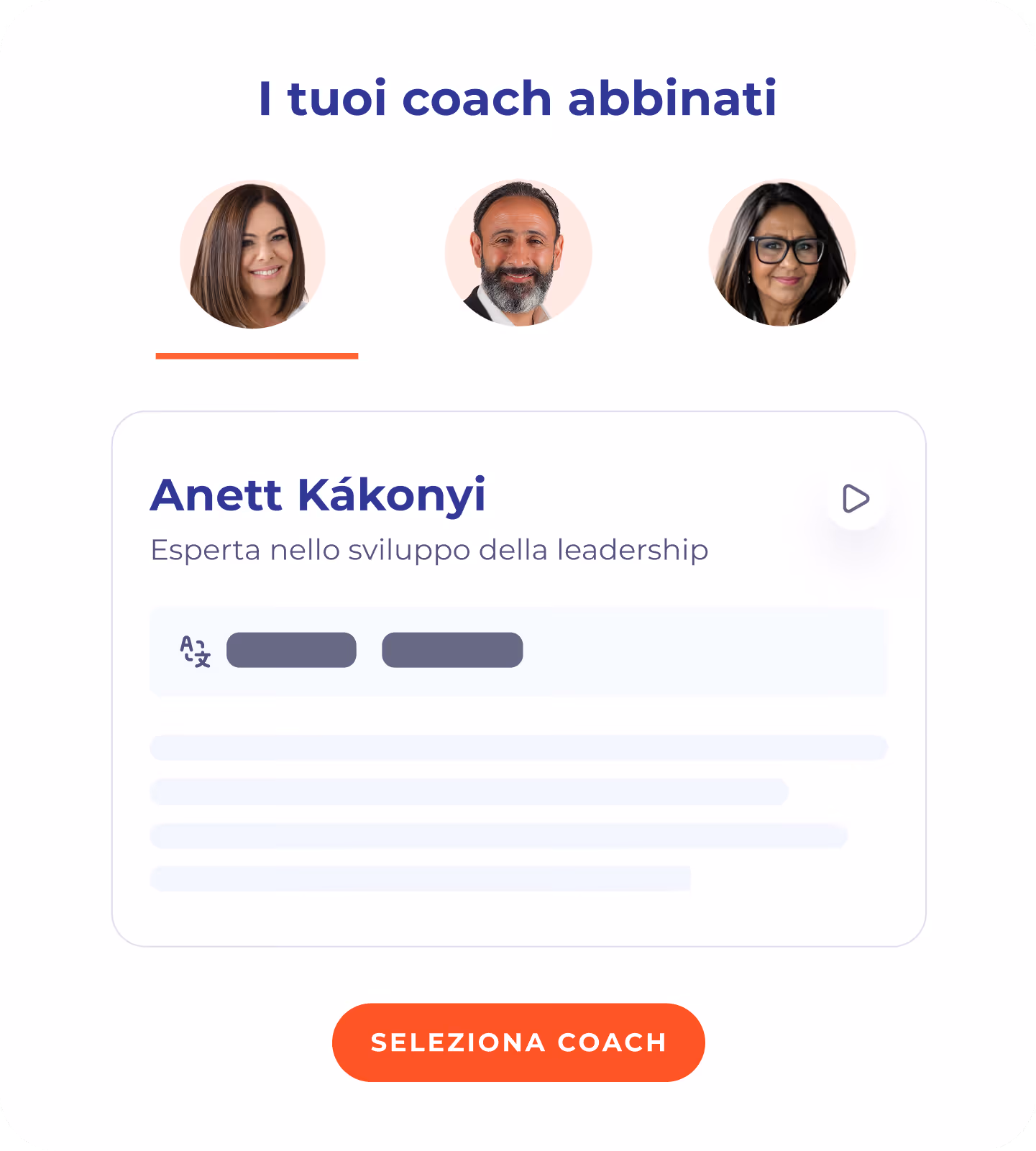 Il nostro algoritmo proprietario garantisce l'abbinamento perfetto tra coachee e coach, personalizzato in base agli obiettivi e preferenze