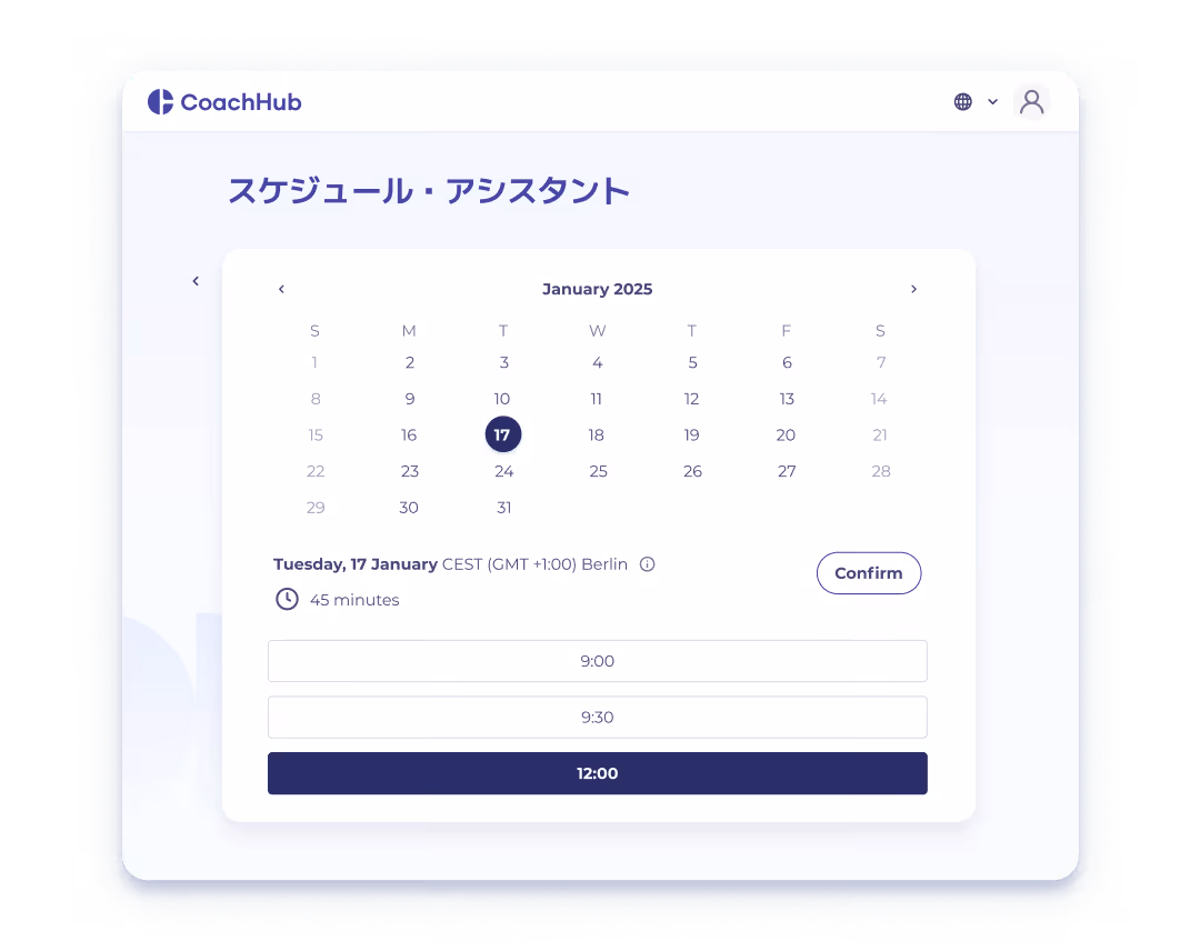 CoachHubでは40以上の言語でエグゼクティブ・コーチングを提供しており、リーダーはどこからでもコーチにつながり、いつでもセッションを予約できます。現地でのオンボーディングや複数言語対応のカスタマーサポートを利用しつつ、異なる地域にわたり一貫した高品質のコーチング体験を実現しています。
